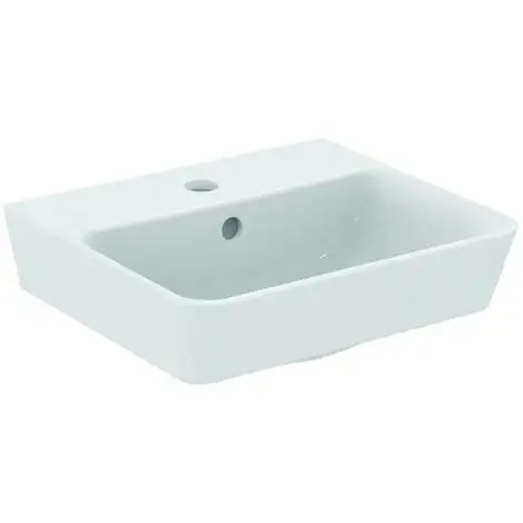 Ce lavabo de la marque Porcher propose un design blanc pour de petites dimensions.