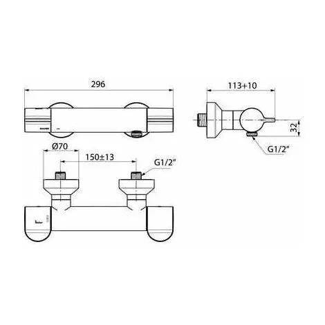 Caractéristiques : Désignation : Mitigeur thermostatique douche – Vendu par : 1 – Norme : NF