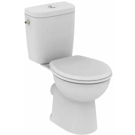 Pack WC « »Prêt à poser » » avec abattant :Cuvette sortie horizontale en porcelaine vitrifiée, carénéeAbattant thermodur (en urea) sans frein de chute, charnières inox, fixation par le dessous