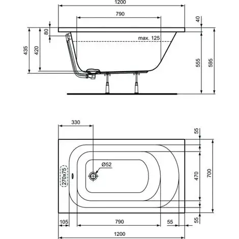 Caractéristiques techniques de la baignoire Ulysse