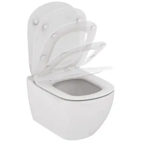 Description Cuvette suspendue NF sans bride en porcelaine vitrifiée.Carénage complet avec fixations cachées.Système de chasse optimal : 90% de la surface rincée.Facilité d’entretien par nettoyage à l’éponge.Pas de dépôts : pas de développements microbiens.Entraxe de fixation sur bâti-support : 180 mm.Abattant thermodur ultrafin « frein de chute ».Déclipsable pour un nettoyage facile.