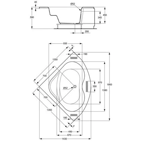 Porcher – Tablier frontal d’angle pour baignoire Ulysse 135×135 cm en acrylique blanc